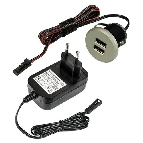 Врезное USB зарядное устройство 2 x USB (A) + сетевой адаптер 220В 2 метра, встраиваемое в стол, в столешницу, в мебель