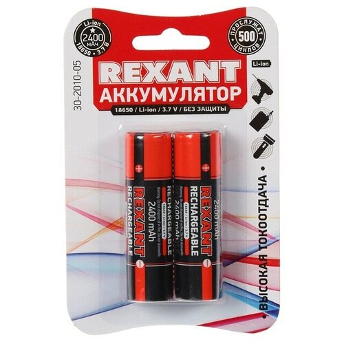 Аккумулятор REXANT, 18650 unprotected, Li-ion, 2400 мАЧ, 3.7 В, 2 шт, блистер./В упаковке шт: 1