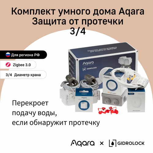 AQARA Комплект Умного дома - Защита от протечки, модель SWK43BS (краны 3/4"), регион работы - Россия, умный дом с Zigbee, работает с Алисой
