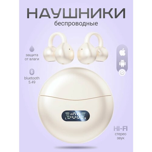 Наушники беспроводные клипсы TWS M-79 Bluetooth с шумоподавлением, молочные