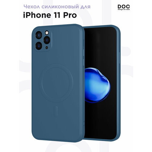 Чехол DesignOnCase "синий", для iPhone 11 Pro, противоударный, силикон, soft-touch, с Магнитом