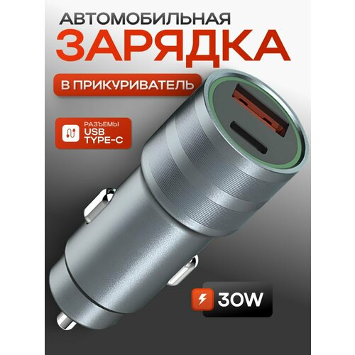 Автомобильная зарядка в прикуриватель USB-Type-C 30W, зарядное устройство для телефона в машину