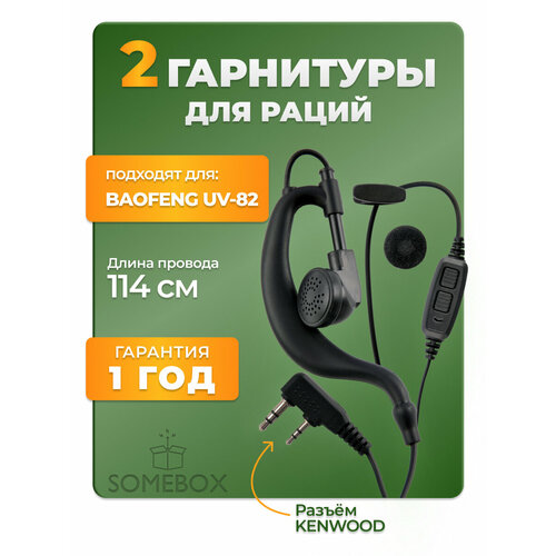 Гарнитура-наушник для рации Baofeng UV-82 с разъемом Kenwood, черная, 2 шт
