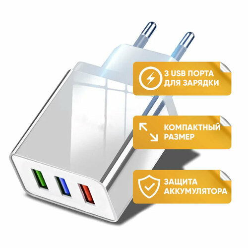 Сетевое зарядное устройство 3 x USB A 3.0 3A D22 для смартфона Apple и Android