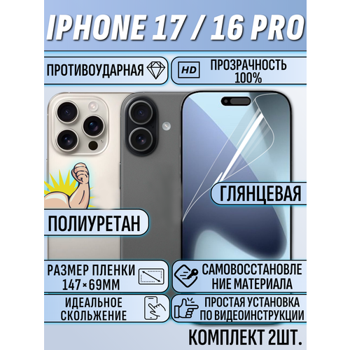 Гидрогелевая пленка для IPhone 16 pro / IPhone 17 защитная полиуретановая глянцевая на весь экран 2 шт