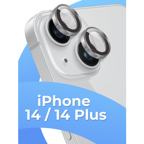 Стекла (линзы) для камеры на iPhone 14 / 14 Plus, 15 / 15 Plus, Набор стекол 2шт. на камеру Айфон 14,15, Плюс, Серебро