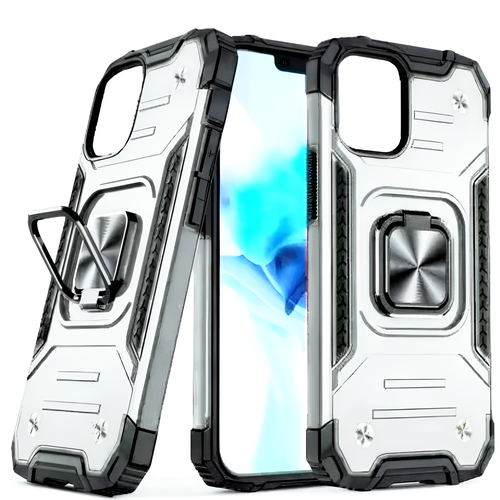 Противоударный чехол для iPhone 13 6.1 дюймов серебро с пластиной для магнитного автодержателя и кольцом подставкой