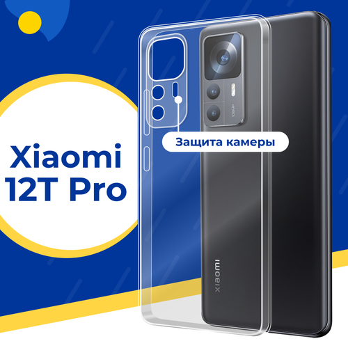 Противоударный силиконовый чехол для телефона Xiaomi 12T Pro / Тонкий чехол с защитой камеры на Сяоми 12Т Про / Прозрачный