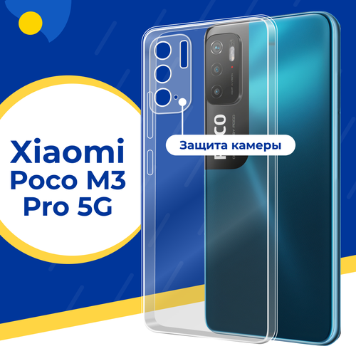 Силиконовый защитный чехол для телефона Xiaomi Poco M3 Pro / Тонкий противоударный чехол на Сяоми Поко М3 Про с защитой для камеры / Прозрачный
