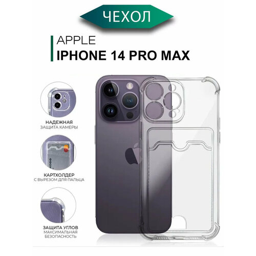 Силиконовый чехол на Айфон 14 Про Макс с защитой камеры / Чехол на iPhone 14 Pro Max c картхолдером (карманом) для карт противоударный