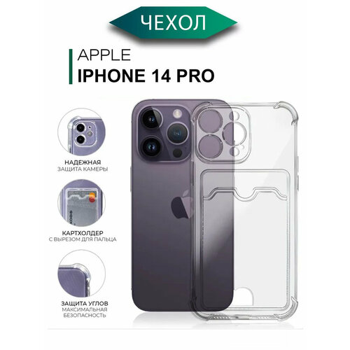 Силиконовый чехол на Айфон 14 Про с защитой камеры / Чехол на iPhone 14 Pro c картхолдером (карманом) для карт противоударный