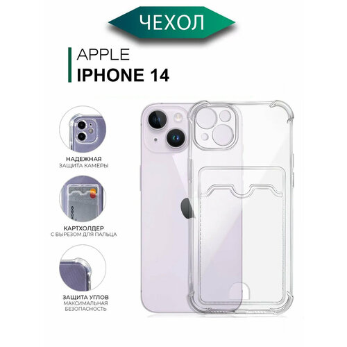 Силиконовый чехол на Айфон 14 с защитой камеры / Чехол на iPhone 14 c картхолдером (карманом) для карт противоударный