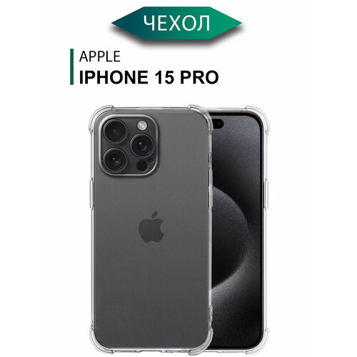 Противоударный чехол с защитой камеры на Айфон 15 Про силиконовый прозрачный / Накладка для Apple iPhone 15 Pro с усиленными углами