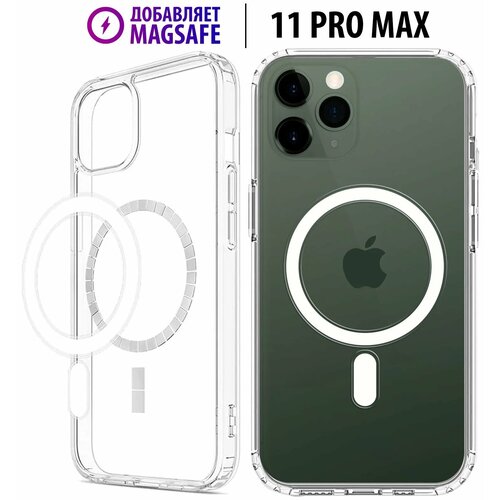 MagSafe чехол для iPhone 11 Pro Max c магнитом для крепления к Mag Safe устройствам - Противоударный с усиленными углами, прозрачный