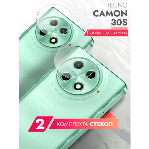 Защитное стекло для Tecno Camon 30S (Техно Камон 30С) на Камеру 2 штуки, (гибридное: пленка+стекловолокно), прозрачное силиконовая клеевая основа тонкое Hybrid Glass, Brozo