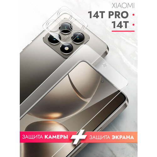 Защитное стекло для Xiaomi 14T; Xiaomi 14T Pro (Ксиоми 14Т; Сяоми 14Т Про) на Экран и Камеру, (гибридное: пленка+стекловолокно), прозрачное силиконовая клеевая основа тонкое Hybrid Glass, Brozo