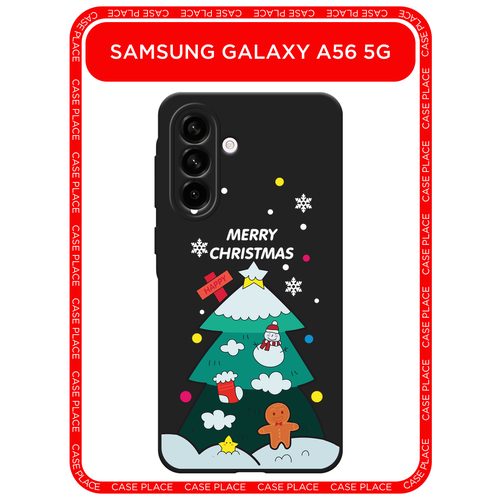 Черный матовый чехол на Samsung Galaxy A56 5G / Самсунг Галакси А56 5G с принтом Christmas tree white