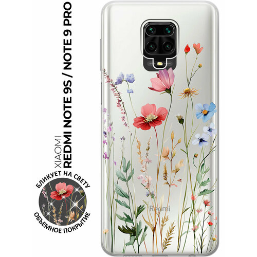 Силиконовый чехол на Xiaomi Redmi Note 9s / Note 9 Pro с принтом "Милые цветочки" прозрачный