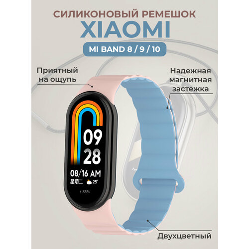 Силиконовый ремешок для Xiaomi Mi Band 8/ 9, с магнитной застежкой, розово-голубой