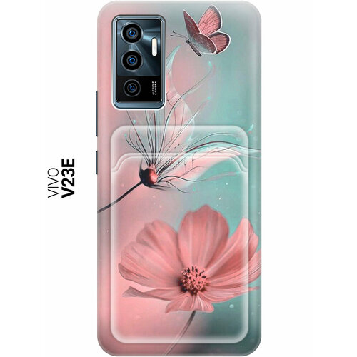 Силиконовый чехол на Vivo V23e / Виво В23е с рисунком "Бабочка и цветы" и карманом для карт