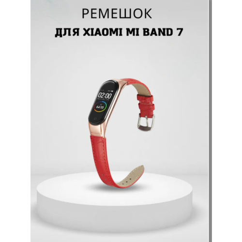 Ремешок кожаный (крокодил) Для Xiaomi Mi Band 7 Красный