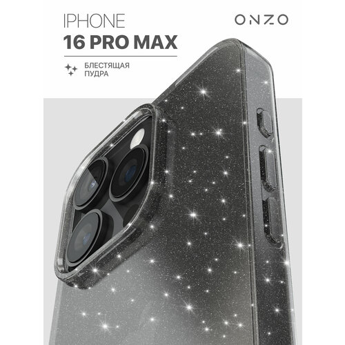 Защитный чехол на Айфон 16 Про Макс / iPhone 16 Pro Max, черный прозрачный с блестками