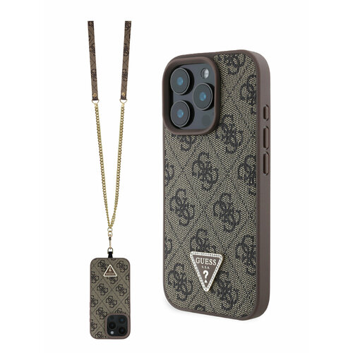 Guess для iPhone 16 Pro Max чехол Crossbody PU 4G Triangle Diamond logo Hard + Universal Strap Brown
