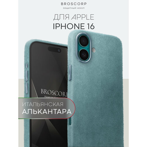 Премиальный чехол BROSCORP на Apple iPhone 16 (Айфон 16), защита камер, алькантара, черный