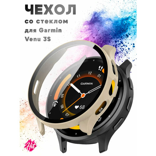 Защитный жесткий чехол с закаленным стеклом для Garmin Venu 3S - слоновая кость