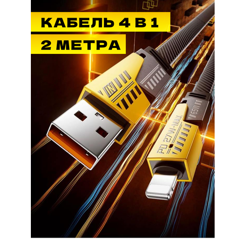 Кабель для зарядки телефона 4 в 1 - Type-C/Type-C, Lightning/Type-C, Type-C/USB, Lightning/USB, USB 3.0, до 65 Вт, длина 2 м.
