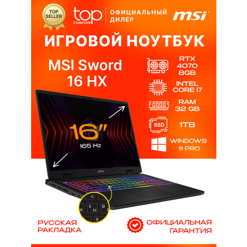 Ноутбук MSI Sword 16 HX B13VFKG 16" FHD+ IPS/Intel Core i7-13700HX/32GB/1TB/RTX4070-8GB/Win11pro
