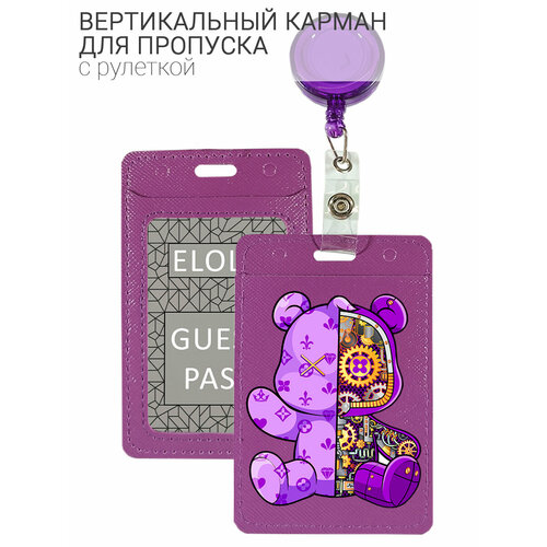 Чехол (бейдж) для пропуска и карт на рулетке с принтом "Сиреневый Кролик с механизмом "