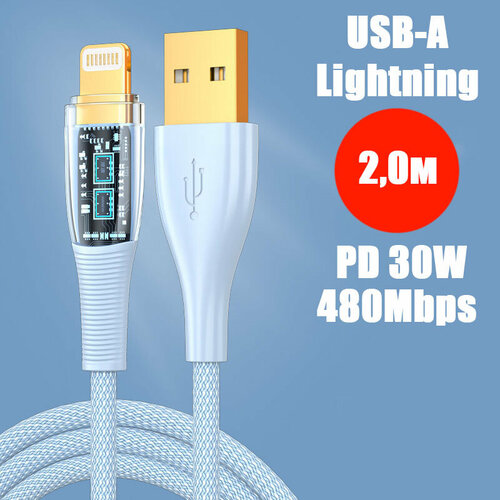 Кабель PALMEXX USB-A to Lightning, PD 30W, длина 2.0м, голубой