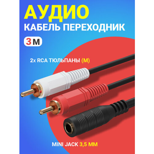 Аудио кабель переходник адаптер GSMIN AV11 Mini Jack 3,5 мм мини джек (F) - 2x RCA тюльпаны (M) (3 м) (Черный)