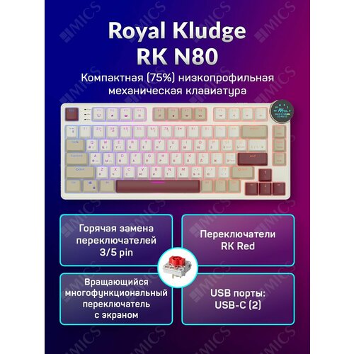 Беспроводная низкопрофильная механическая клавиатура Royal Kludge RK N80 цвет Rosy Clouds, RGB, Hot Swap, кейкапы с подсветкой символов EN, линейные свитчи (Low-Profile RK Red)