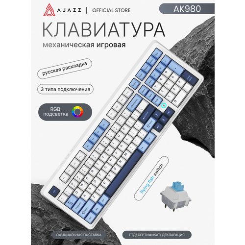 Механическая клавиатура Ajazz AK980, 3 режима подключения, RGB подсветка, Flying Fish Switch
