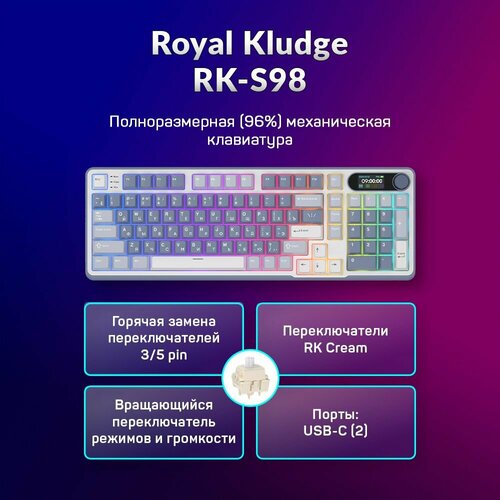Беспроводная механическая клавиатура Royal Kludge RK-S98 (96%) цвет Taro Milk, RGB, Hot Swap, тактильные свитчи (RK Brown)