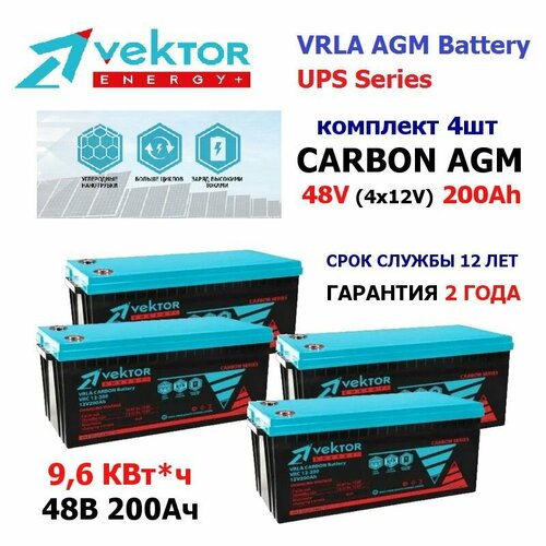 Комплект 4шт 48В альтернатива литий 9,6 кВтч - аккумулятор ИБП систем резервного электроснабжения VEKTOR VRC CARBON