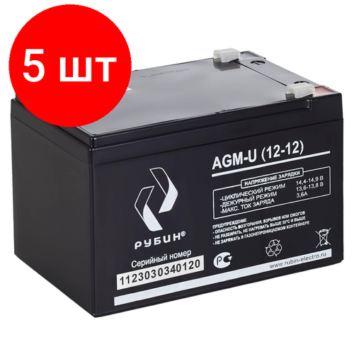 Комплект 5 штук, Батарея для ИБП Рубин 12V 12Ah AGM (РЭ-АКБ1212)