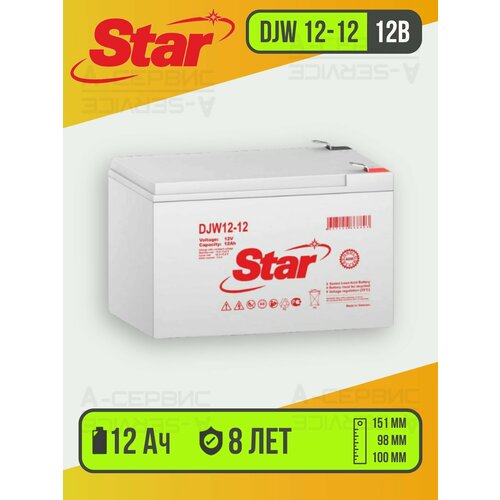 Аккумулятор DJW12-12 F2 STAR (12В 12Ач) для скутеров, ИБП, сигнализаций, GPS оборудования, телекоммуникации, эхолотов