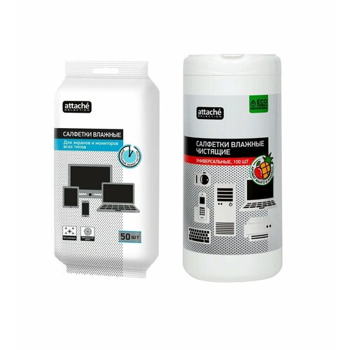 Салфетки Attache Selection влажные, для экранов и мониторов всех типов, 3 уп. по 50 шт