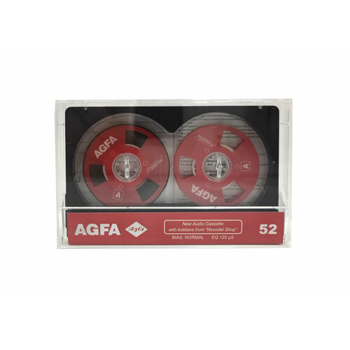 Аудиокассета "AGFA" с красными боббинками в чёрно-прозрачном корпусе