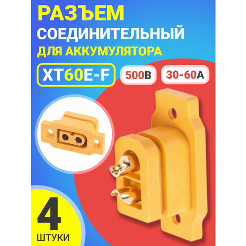 Силовой разъем питания для аккумуляторов XT60E-F DC500V 30A-60A соединительный коннектор для АКБ с латунным разъемом, 4 штуки (Желтый)