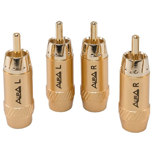 RCA - коннектор для кабеля AurA RCA-P617 до 6 мм, позолочен. 2 левых + 2 правых, блистер