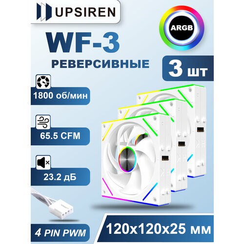 Корпусный реверсивный вентилятор для ПК Upsiren WF-3 Белый 3шт, 120 мм, ARGB