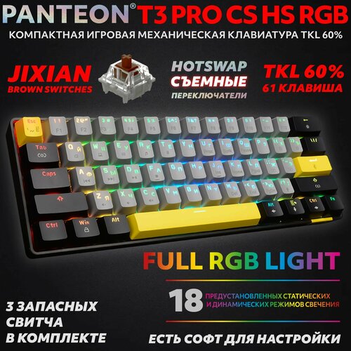PANTEON T3 PRO CS HS RGB Grey-Black (39) Механическая клавиатура Jixian Brown, 61 кл, HotSwap, USB)