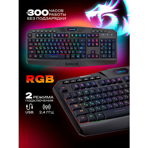 Беспроводная клавиатура Redragon Harpe Black USB 78121 Moss Switch, black, русская, 1 шт.