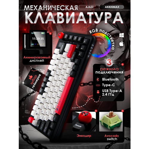 AJAZZ AK980 Механическая клавиатура трехрежимная, беспроводная игровая с экраном, 2.4g/Bluetooth/проводное подключение
