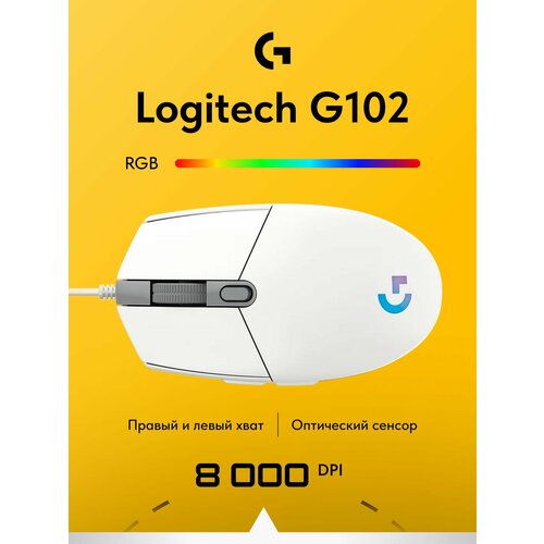Игровая мышь Logitech G G102 Lightsync, оптическая, 8000 DPI, RGB, 6 программируемых кнопок