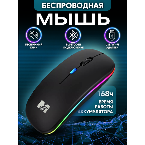 Мышка беспроводная компьютерная для ноутбука с подсветкой, для пк с Bluetooth подключением (черная)